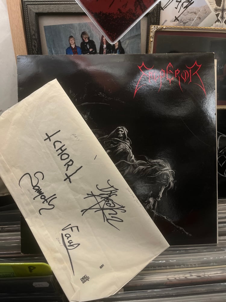 Signatures date from the album release, as confirmed by Ihsahn and Samoth. Top condition vinyl, some light wear on outer cover!!