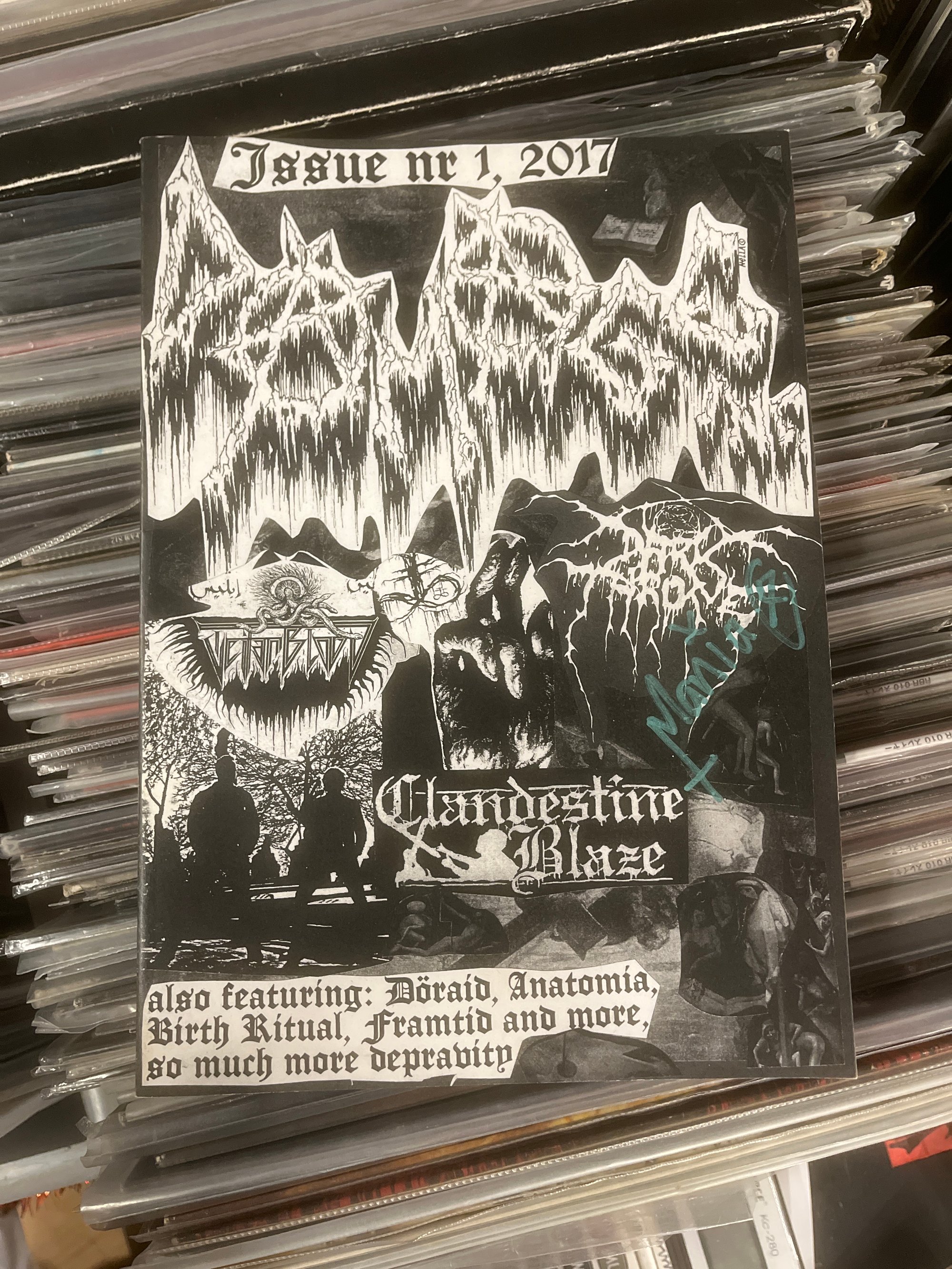 Maniac of Mayhem’s Zine w/signature on front, and his church membership withdrawal certificate, also signed.